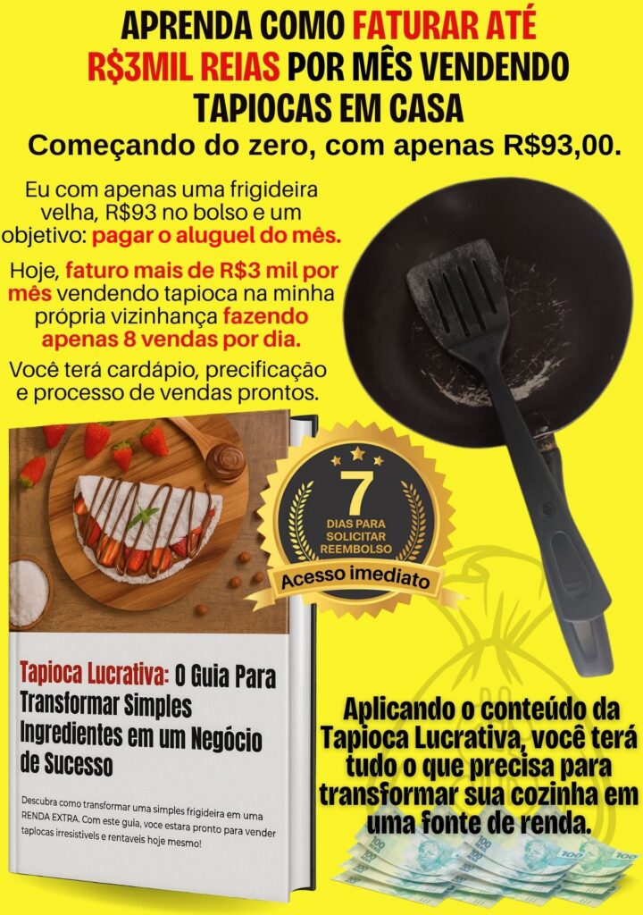 Foi aí, entre lágrimas e fé, que olhei pra cozinha do meu pequeno apartamento e decidi tentar. Com R$93 no bolso e muita coragem, comprei os primeiros ingredientes e comecei a fazer tapiocas com recheios simples e práticos.